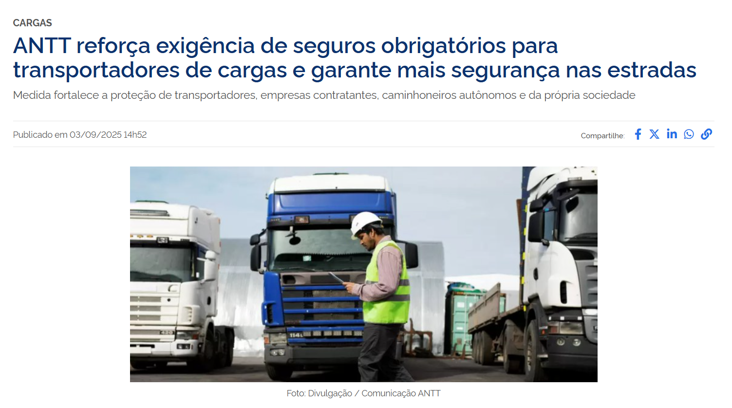 Participar do dia-à-dia do transportador com seus embarcadores possibilita uma leitura completa [ e segura ] da operação e o tratamento dos RISCOS envolvidos, o que é fundamental! Assim, hoje participamos de operações com grandes embarcadores somando conhecimento técnico, legal e principalmente operacional!